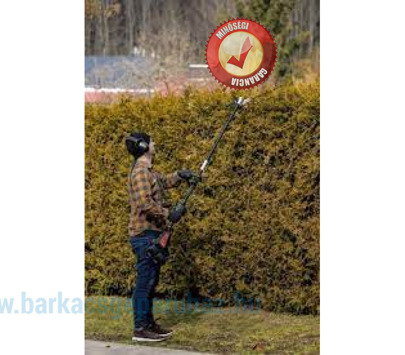 Sövénynyíró: max. 24 mm vágási vastagság; 406 mm pengeszélesség; 165°-ban elforgatható 15°-os lépésekben