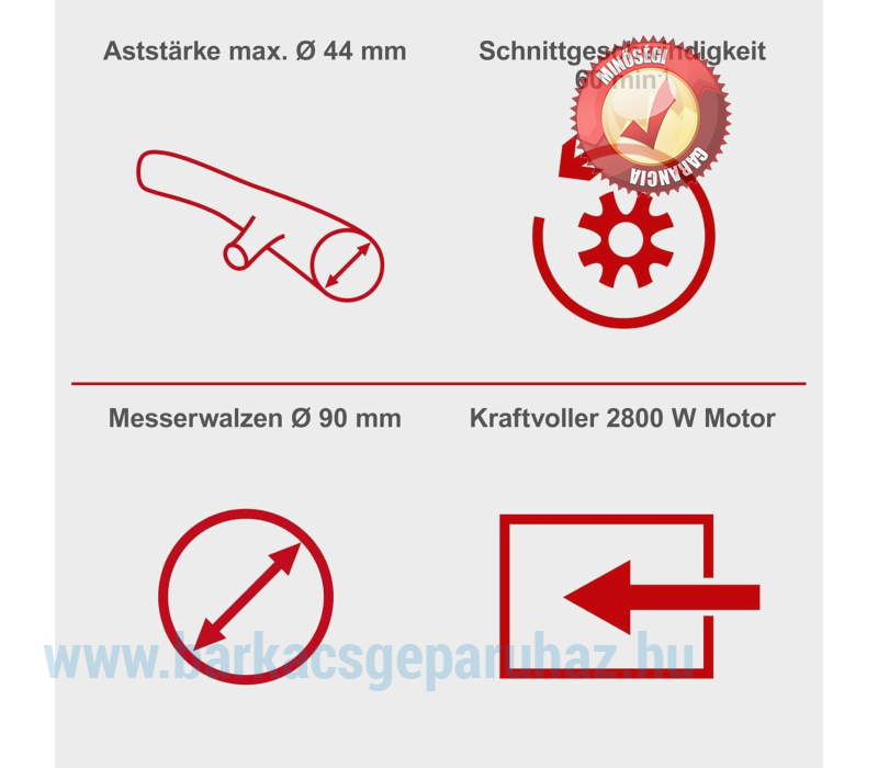 - Vágási vastagság 45 mm ágátmérőig