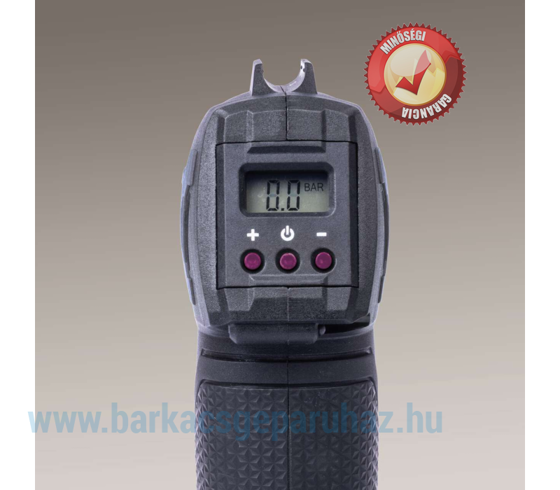 Az LCD kijelző mutatja az aktuális és az előre beállított üzemi nyomást barban vagy PSI-ben