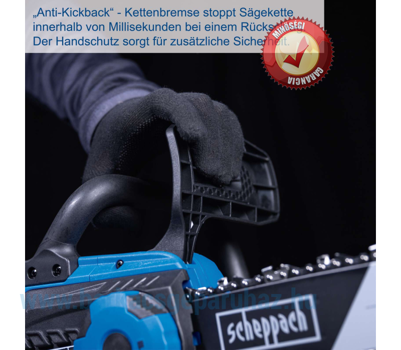 - Visszarúgásgátló – a láncfék ezredmásodpercek alatt leállítja a láncot visszarúgás esetén