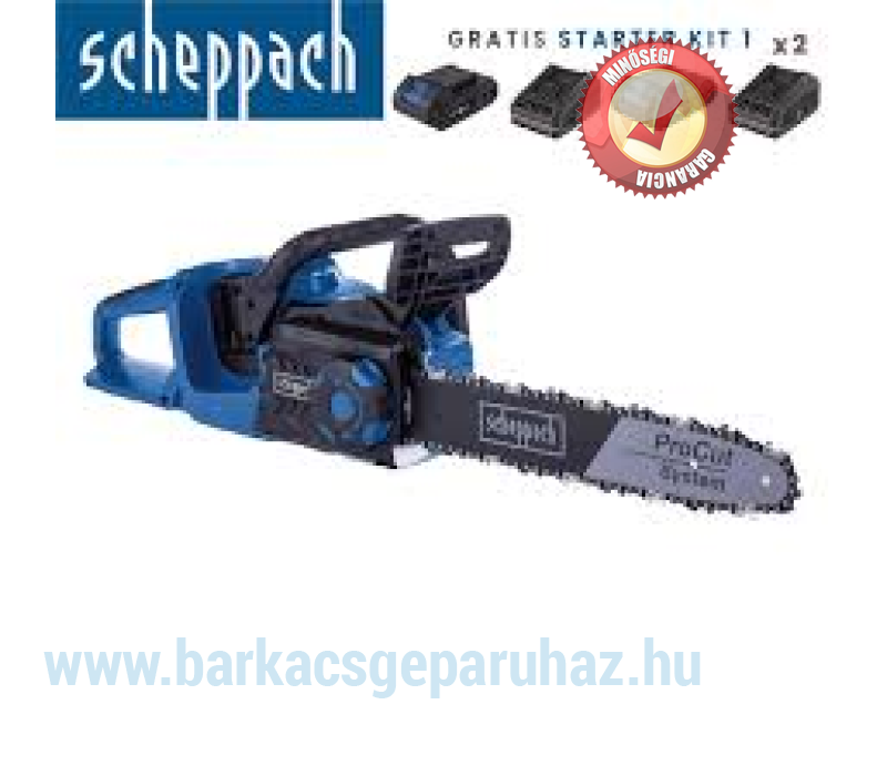 • Vezeték nélküli munkavégzés a Scheppach IXES 20 Volt sorozattal – minden akkumulátor és a rendszer sorozat töltői kombinálhatók az akkumulátoros láncfűrésszel