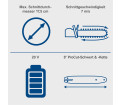 - Kiváló minőségű 8'' / 20 cm-es ProCut vezetőlemez és lánc, valamint 17,5 cm-es vágási hossz