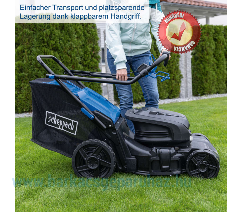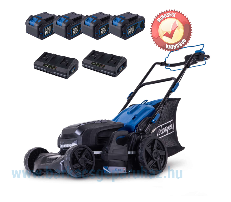 - Vezeték nélküli működés a Scheppach IXES 20 voltos sorozatával – a rendszersorozat összes akkumulátora és töltője kombinálható az akkus fűnyíróval