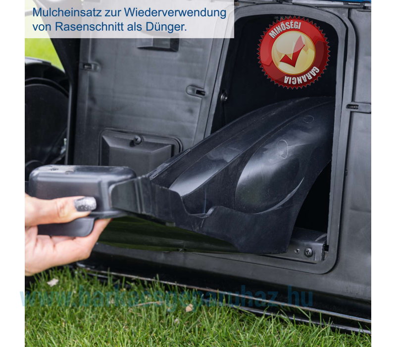 - Mulcsozó betéttel a fűnyesedék optimális műtrágyaként való újrahasznosításához