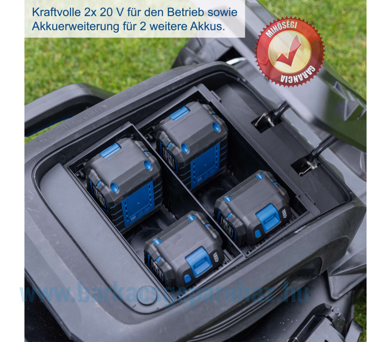 - Erős 2x 20 V-os működéshez és akkumulátorbővítéshez 2 további akkumulátorhoz