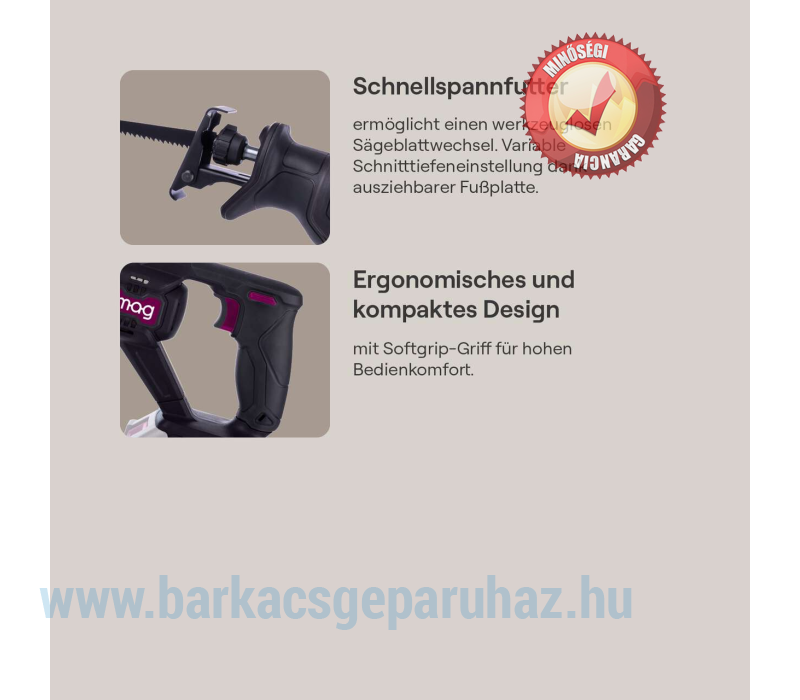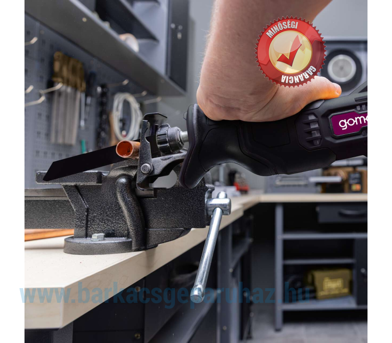 GO-SBL100 akkus orrfűrészünkkel precíz vágásokat végezhet fában, műanyagban, színesfémben vagy építőanyagokban. A szerszám nélküli, gyors fűrészlapcsere és a folyamatosan állítható löketszám maximális kényelmet biztosít. Az ergonomikus kialakításnak, a puha markolatú fogantyúnak és a LED-es munkalámpának köszönhetően a munka élvezet lesz. A csomag tartalmaz egy fűrészlapot fához és egy imbuszkulcsot