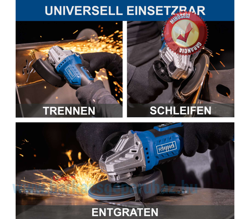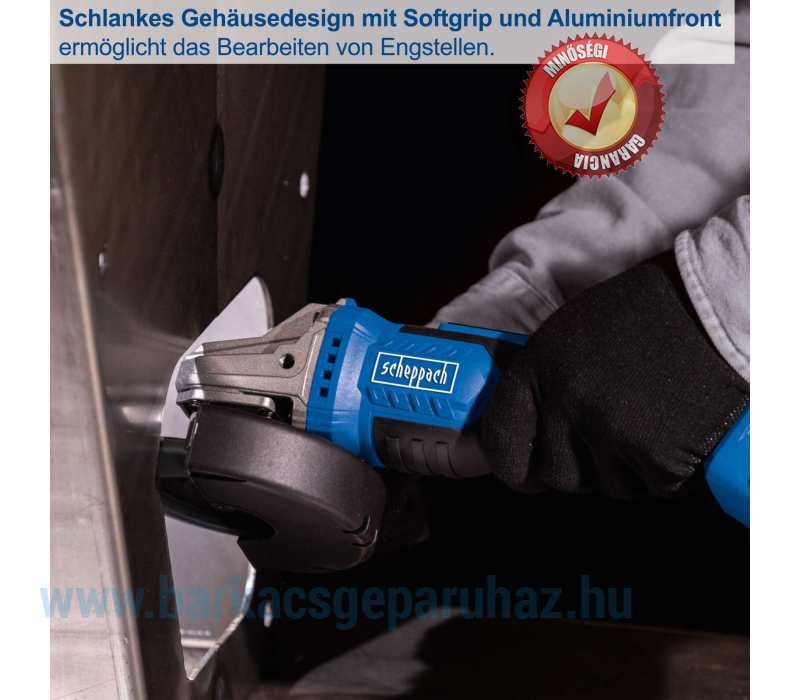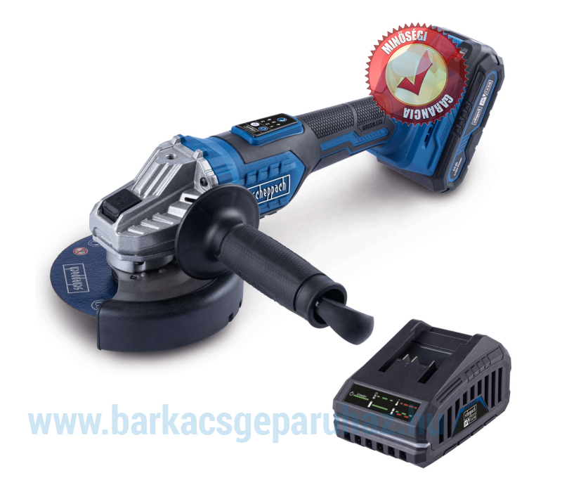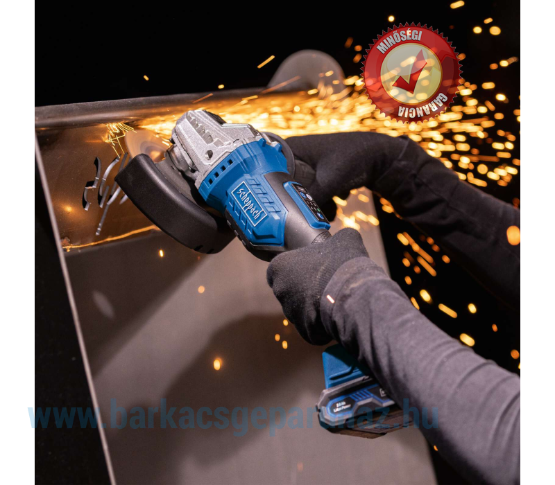 Akkus sarokcsiszoló kefe nélküli motor lágyindítású csiszolótárcsákkal, átmérő 125 mm, 20 V IXES sorozatú fordulatszám beállítása 3000–10 000 ford./perc akkumulátor és töltővel! BC-AG125-X - SET S scheppach