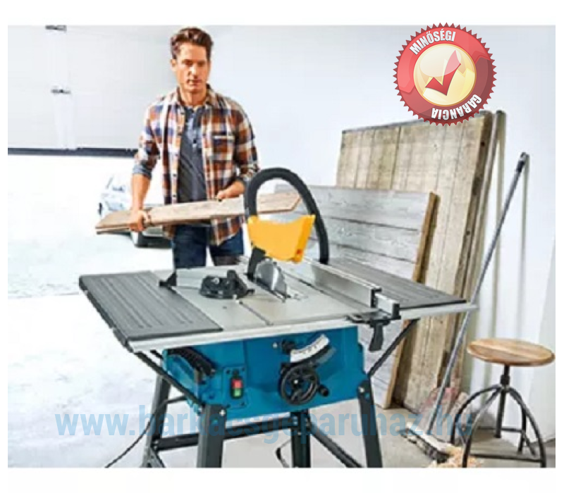 Az asztali körfűrész a munkafelület bal és jobb oldalán asztalhosszabbítóval is fel van szerelve, hogy még nagyobb munkadarabokat is biztonságosan és síkban lehessen elhelyezni a fűrészasztalon, amely a hosszabbítókkal együtt 930 mm széles.