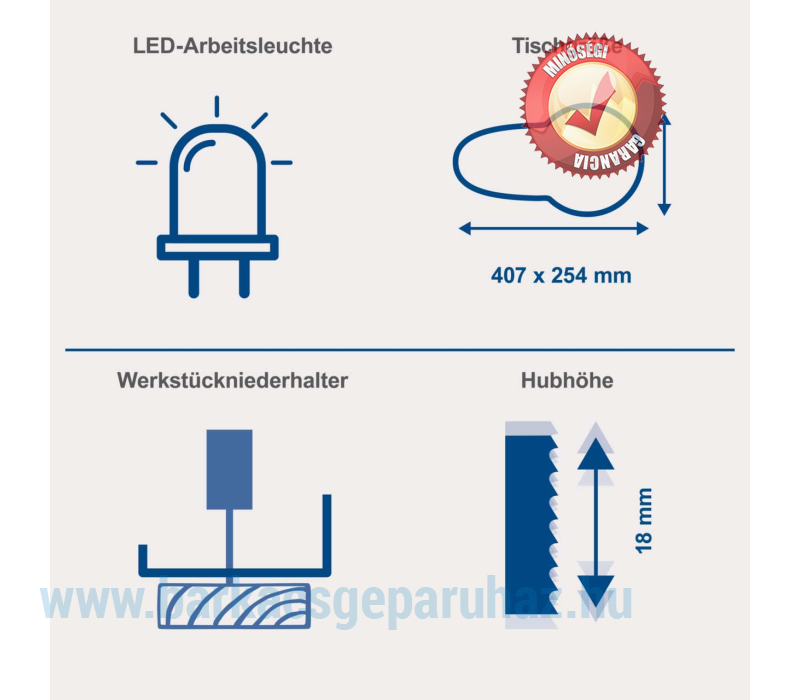 • Változtatható löketszám 550 – 1500 min-1 és 18 mm löketmagasság
