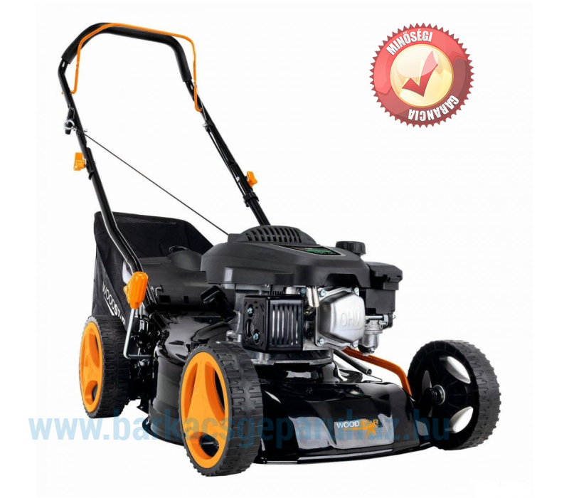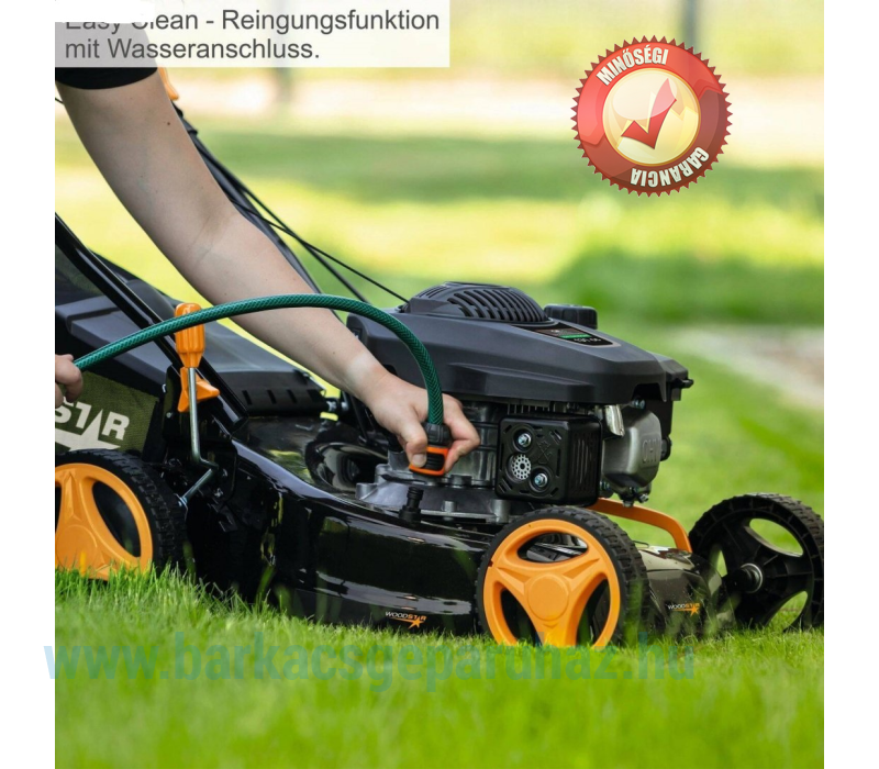 A TT132-42 Woodster benzinmotoros fűnyíró az ideális partner a gondozott kertben. 42 cm-es vágási szélességével és a 25 és 75 mm között 7 fokozatban állítható központi vágási magasságával rugalmasan alkalmazkodik az Ön igényeihez. A nagy teljesítményű, 3,3 lóerős, 4 ütemű motor megbízható teljesítményt biztosít, míg a húzós indítószerkezet megkönnyíti az indítást. A fűnyíró praktikus, 45 literes fűgyűjtővel rendelkezik, amely hatékonnyá teszi a fűnyírást és a gyűjtést. A porszórt acélszerkezetnek köszönhetően robusztus és tartós. Kerékhajtás nélkül is könnyű és manőverezhető marad, így tökéletes akár 800 m²-es területekre. Az összecsukható fogantyú megkönnyíti a tárolást, míg az Easy Clean rendszer leegyszerűsíti a tisztítást. Fekete és narancssárga színben kapható, ez a fűnyíró igazi szemet gyönyörködtető lehet a kertedben