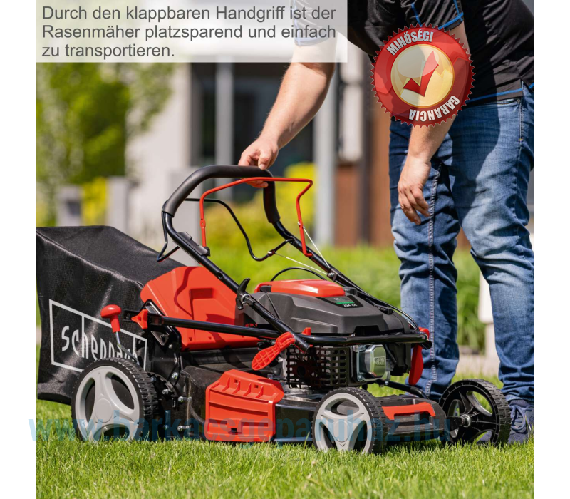 Nagy kert? Nagy fűnyíró! Mégpedig a Scheppach MS230-53. Ez a fűnyíró nagy teljesítményű, 224 cm3-es 4 ütemű, 6 LE / 5150 W-os benzinmotorjával minden kerttulajdonos álma akár 1800 m²-es gyepterülettel.