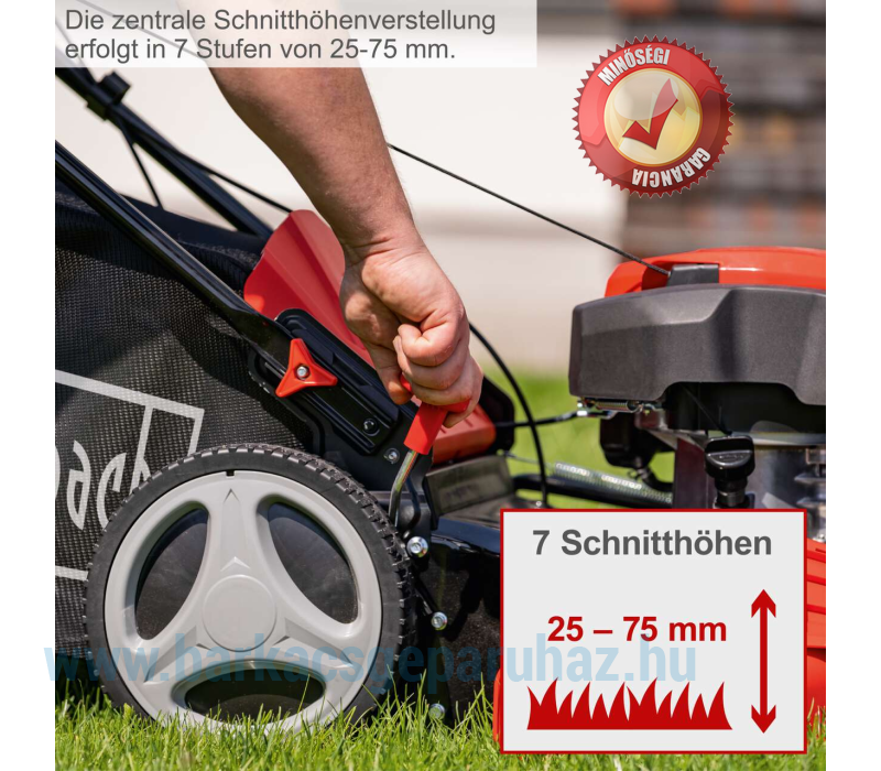 - Központi 7 irányban állítható vágási magasság (25-75 mm)