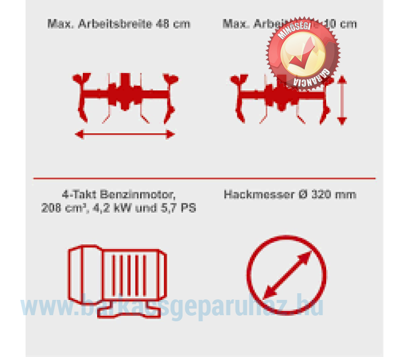 A 480 mm-es munkaszélesség gyors munkavégzést tesz lehetővé