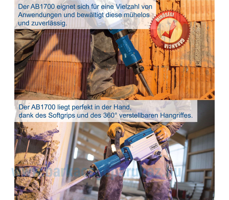 Az AB1700 30 mm-es hatszögletű szerszámtartóval rendelkezik. A szerszámcsere gyors és egyszerű, további szerszámok nélkül, a gyorskioldós szorítónak köszönhetően. Egy 390 mm-es hegyes véső és egy 390 mm-es laposvéső is tartozék.