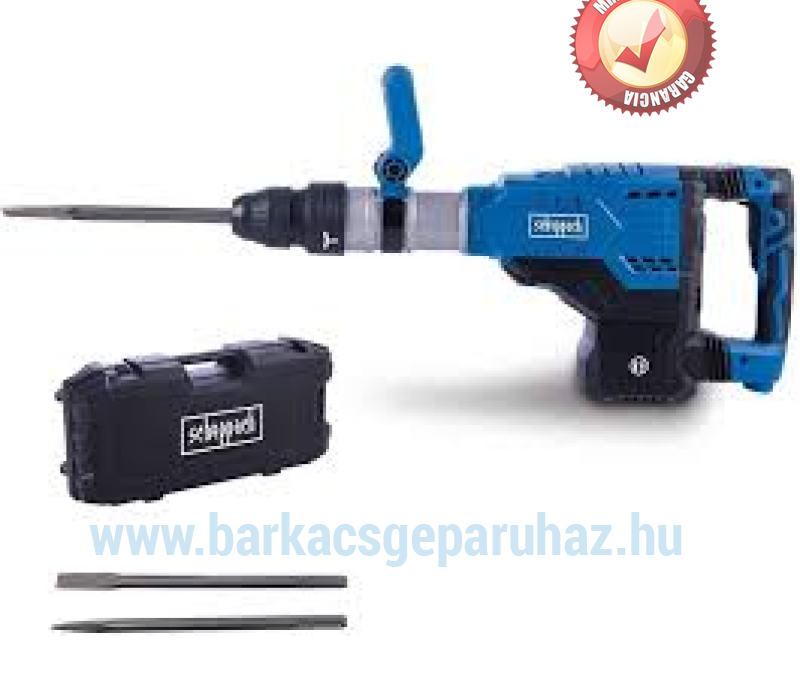 A Scheppach AB2000 bontókalapács 60 joule ütőerővel, 2000 ütés/perc ütési sebességgel és erőteljes 1700 wattos motorral alkalmas igényes bontási munkákra vagy áttörésekre betonban, kőben vagy falazatban. Az SDS-Max tartó lehetővé teszi az egyszerű, szerszám nélküli tartozékcserét. A véső 12 különböző pozícióban rögzíthető és így az adott alkalmazáshoz optimálisan beállítható. A bontókalapács kerekes szállítóládában, valamint hegyes és lapos vésővel kerül kiszállításra. • Erőteljes bontókalapács 60 J ütőerővel és 2000 ütés/percsel
