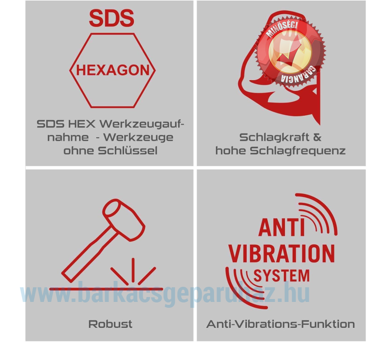 - Egyszerű és gyors szerszámcsere a 30 mm-es hatszögletű szerszámtartóval
