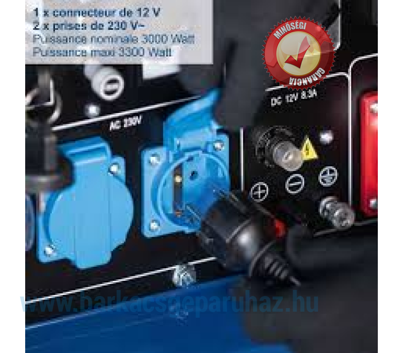 Generátoteljesítmény max. / tartós (kW): 5,0/4,2 (400V), 3,3/3,0 (230V)