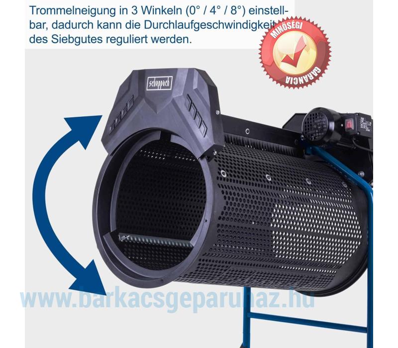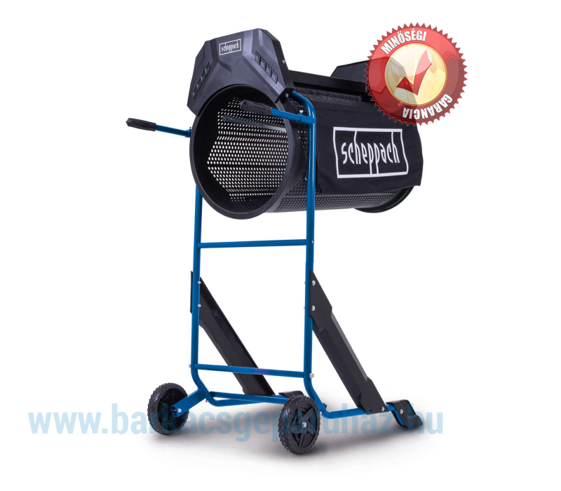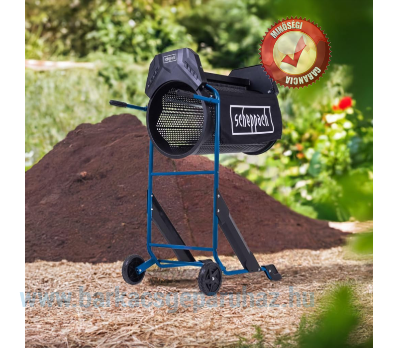 A Scheppach RS500 hengeres szűrővel még nagy mennyiségű, sokféle anyag, például talaj, homok vagy humusz is hatékonyan és egyszerűen szűrődhet. A szűrődob állítható dőlésszögével (0° / 4° / 8°) szabályozható a szűrőanyag áteresztőképessége. A különböző hálószemek tovább megkönnyítik a munkát. Az integrált keferúd biztosítja a szűrődob megbízható tisztítását, különösen nedves anyag használata esetén.