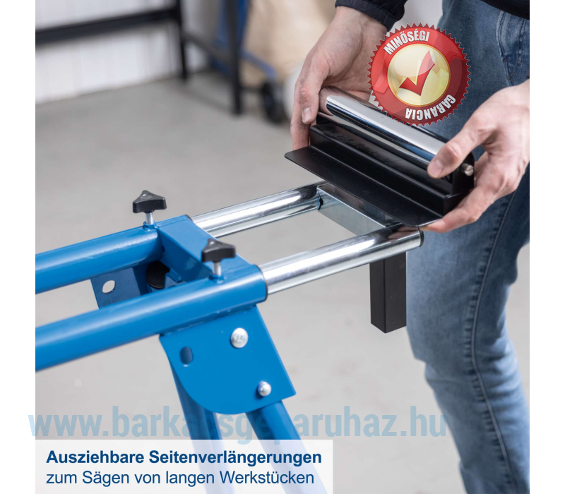 - Stabil oldalsó toldatok 1,0-től 1,65 méterig hosszú munkadarabok fűrészeléséhez