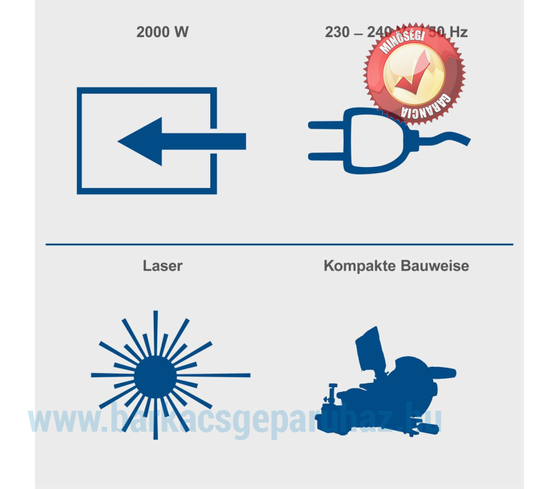 - Beépített lézer a vágóél pontos kijelzéséhez