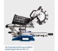 A húzó funkciónak köszönhetően a gérvágó fűrész könnyedén vág akár 340 mm széles és 65 mm magas munkadarabokat. A stabil dupla oszlopos vezetőnek köszönhetően a fűrészlap pontosan vezethető a munkadarabon keresztül. A széles fogantyú és a fűrészlap-védő maximális biztonságot nyújt a gérvágó fűrész felhasználójának.