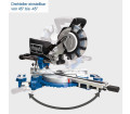 A forgóasztal -45° és +45° közötti elforgatási tartománnyal rendelkezik a különböző ferdevágásokhoz. A reteszelési pontok lehetővé teszik a gyakori szögek (45-30-22,5-15-0) gyors és egyszerű rögzítését. A fűrészlap 45°-kal balra is dönthető gérvágásokhoz.