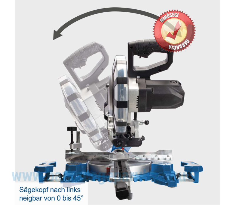A 2200 wattos motor maximális 4800 fordulat/perc fordulatszámmal elegendő teljesítményt biztosít kemény- és puhafa, valamint a közönséges műanyagok megmunkálásához. A stabil dupla oszlopos vezetésnek köszönhetően a fűrészlap pontosan vezethető a munkadarabon keresztül. A széles fogantyú és a teljesen zárt fűrészlap-védő maximális biztonságot nyújt a húzó- és gérvágó fűrész felhasználójának.