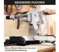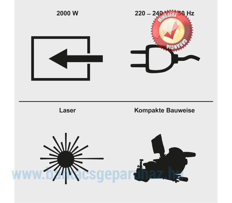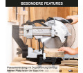 A széles fogantyú és a teljesen zárt pengevédő maximális biztonságot nyújt a gérvágó fűrész felhasználójának. Az integrált lézer pontos vágási vonalat jelez, lehetővé téve a precíz vágásokat mind fában, mind műanyagban.