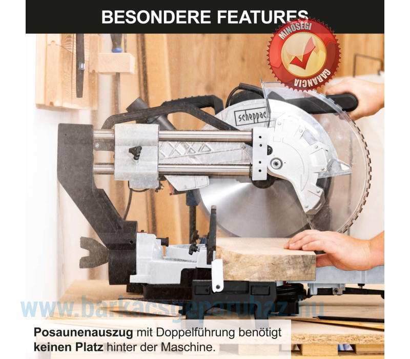 A teleszkópos toldójú Scheppach KZGS310PS-BE gérvágó fűrész ideális választás, ha korlátozott a műhelyhely, de mégis szükség van egy kiváló minőségű és sokoldalú gérvágó fűrészre. Az innovatív, fix síneken vezetett, úgynevezett teleszkópos toldónak köszönhetően a KZGS310PS-BE nem igényel helyet a gép mögött, így közvetlenül fal mellé is helyezhető.