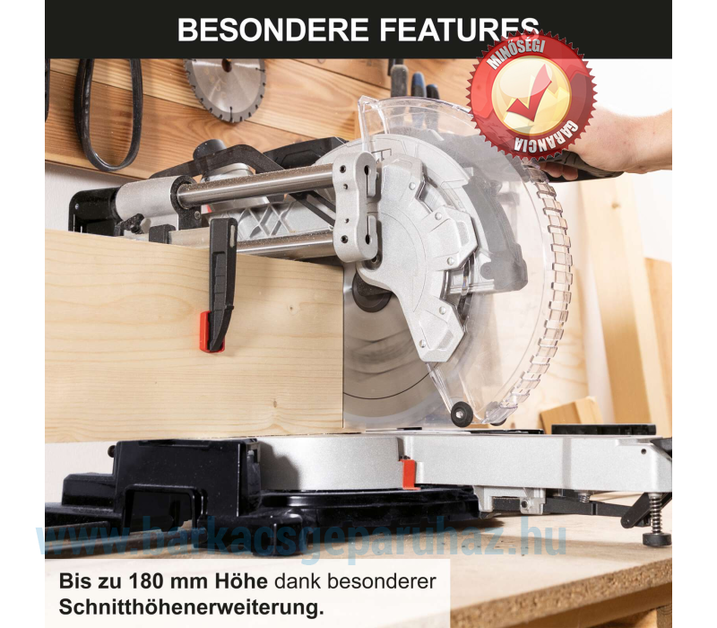 A speciális vágási magasság-hosszabbítónak köszönhetően akár 180 mm-es vágási magasság és maximum 20 mm-es szélesség is elérhető keresztvágásnál. Ezáltal a www.scheppach.com oldalról beszerezhető Scheppach gérvágó fűrész tökéletes kiegészítője lehet minden olyan műhelynek, ahol gyakran végeznek nagyobb projekteket.