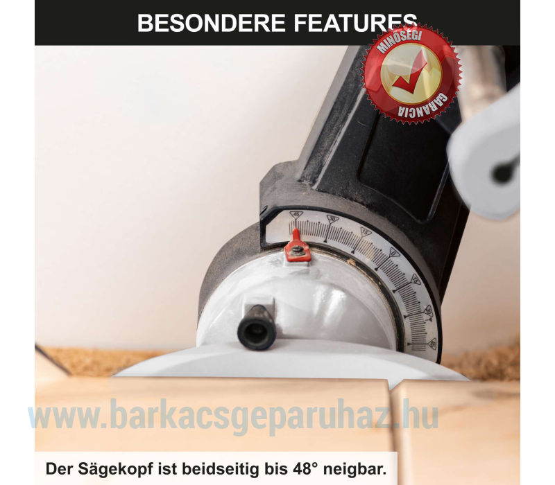- A fűrészfej mindkét oldalra 48°-ban dönthető a professzionális eredmény érdekében