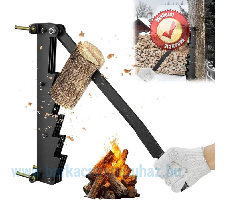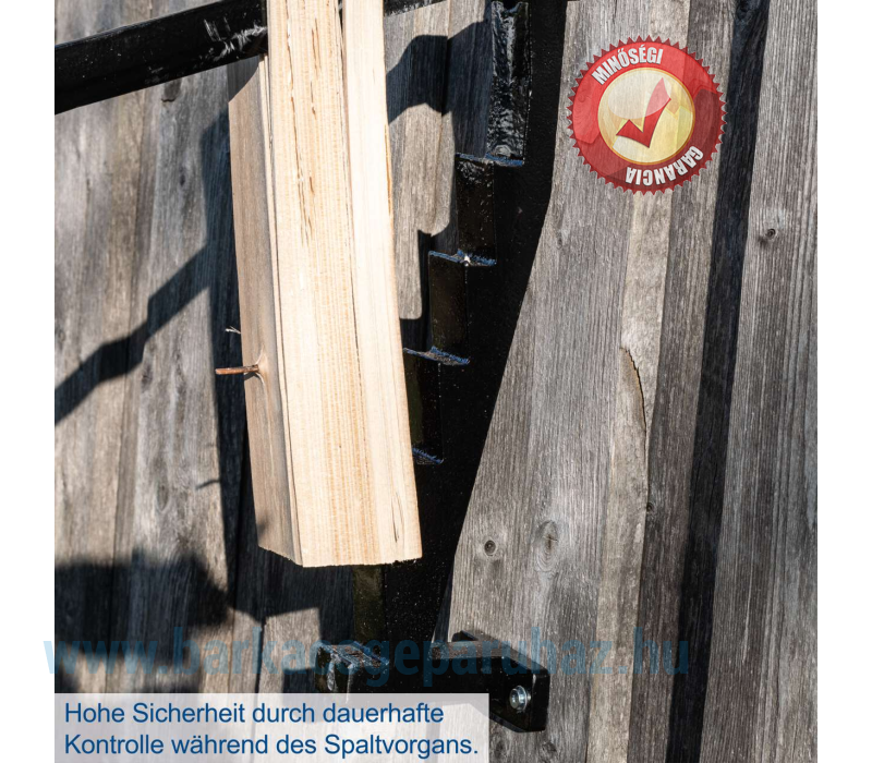 - Az emelőhatás lehetővé teszi akár 340 mm hosszú rönkök erőfeszítés nélküli és biztonságos hasítását