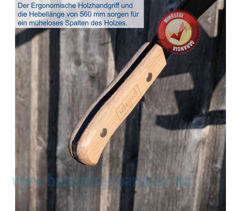 A Scheppach aprítókés nélkülözhetetlen eszköz a rönkök és a tapló biztonságos vágásához minden kandallóval vagy fatüzelésű kályhával rendelkező háztartásban. Jelentősen biztonságosabb és kényelmesebb alternatívája a fejszével való hasításnak.