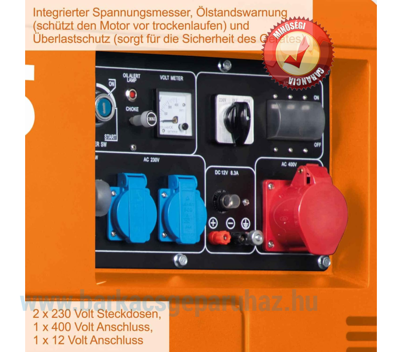 Ixes /Scheppach/IX-SGD-5500D Diesel Aggregátor-áramfejlesztő-elektromos indítás, 7,7 LE, 5000 W, 2 x 230 V, 1 x 400 V aljzat, 16 literes tartály, AVR rendszer