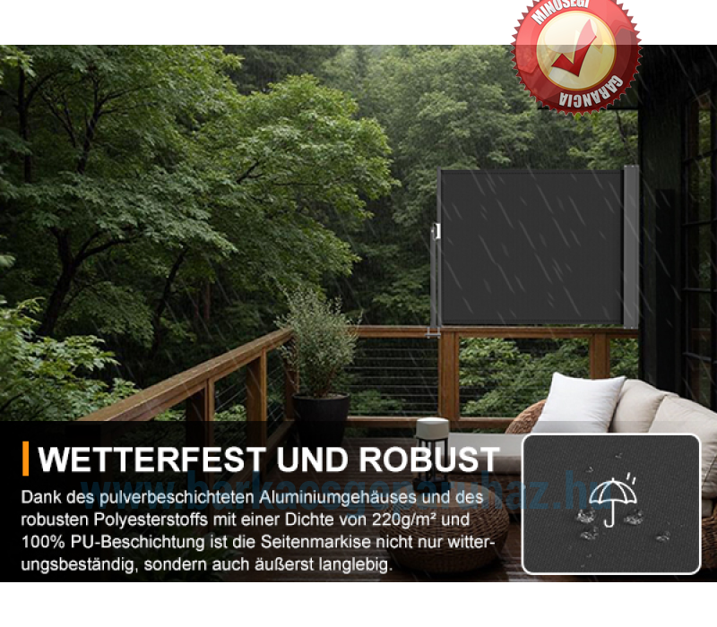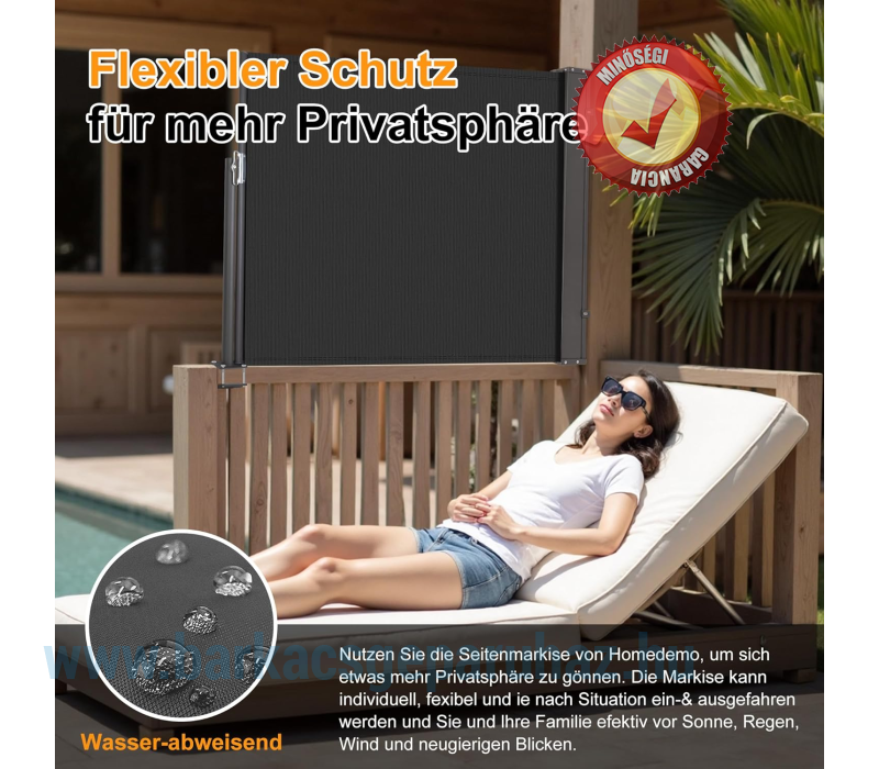 Kihúzható oldalsó napellenző, 2m*1,2M Betekintést gátló roló, Napvédő napellenző, Szélvédő, Vízálló oldalra húzható napellenző, Oldalsó roló erkélyre, teraszra, kertbe