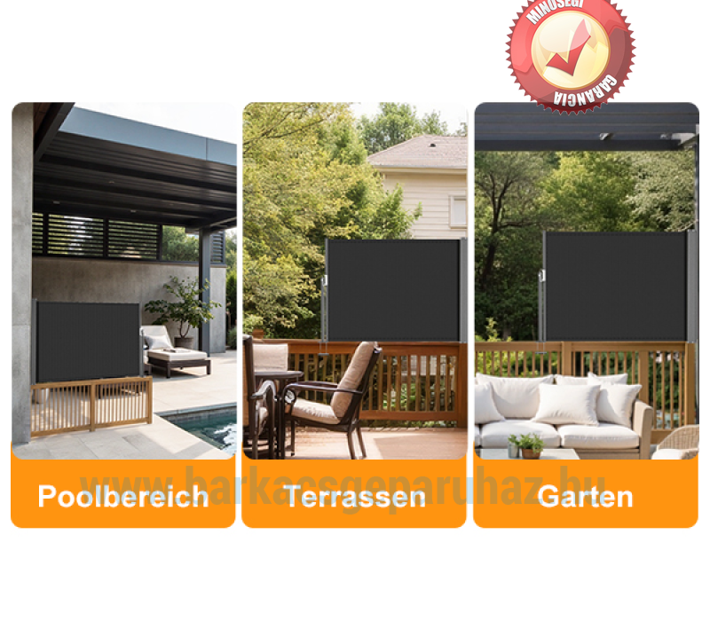 Vízálló és szélálló: ez a napellenző vízálló PU bevonattal rendelkezik, amely ellenáll a szélnek és az esőnek, így biztonságosan használható különböző időjárási körülmények között. Sokoldalúságának hatékony udvarokba alkalmas, hanem térelválasztóként is használható beltéren vagy kültéren.