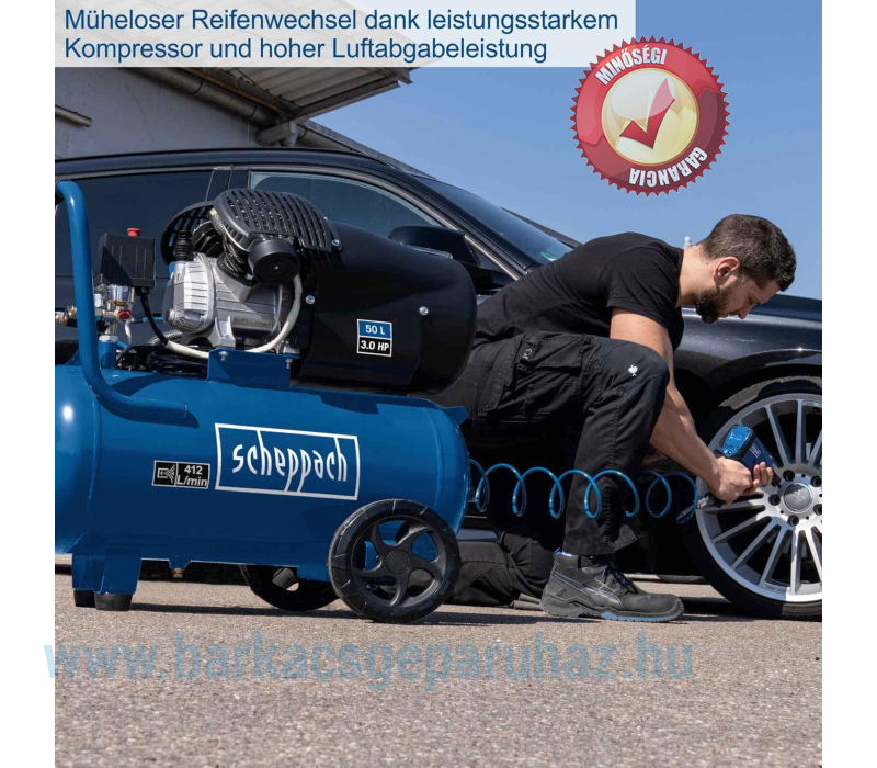 A Scheppach HC500 kompresszora olyan sűrített levegővel működő szerszámokhoz alkalmas, amelyek akár kb. 371 l/perc légáramlással is működtethetők, például gumiabroncs-felfújókhoz, lefújó pisztolyokhoz vagy festékszóró pisztolyokhoz.