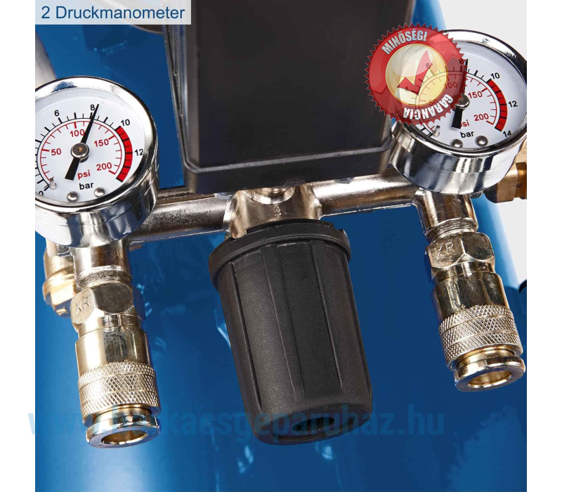 Egy nyomásszabályozó segítségével az egyik nyomásmérőn előre beállítható a nyomás.
