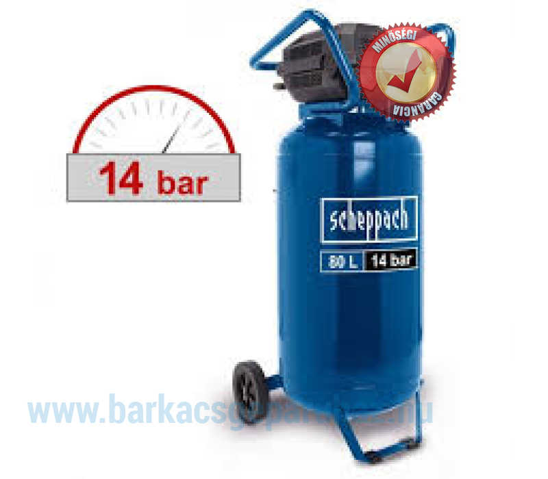 A HC85V maximum 14 bar üzemi nyomással működik. Ez teszi a kompresszort ideálissá különösen magas követelményekhez, például teherautó gumiabroncsok feltöltéséhez. 80 literes tartályával és 330 l/perc maximális szívóteljesítményével a scheppach HC85V nagyobb projektekhez is ideális.