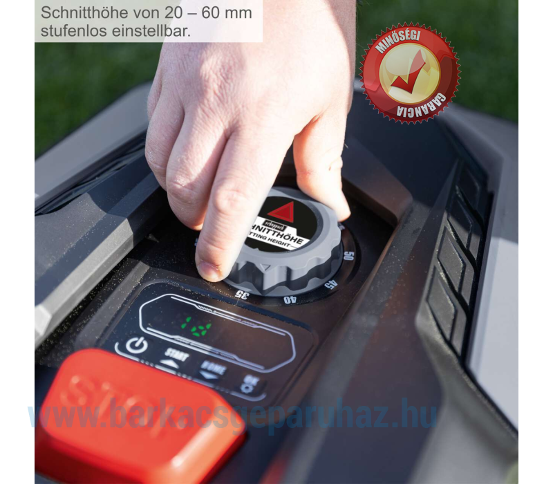 • Vágási magasság fokozatmentesen állítható 20 – 60 mm között