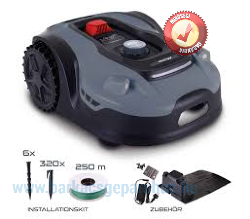 - Tartalmaz 3 A töltőállomást, 250 m-es határolóvezetéket, 320 vezetékcsapot, 6 rögzítőcsapot, 9 fűnyírókést (3 előre összeszerelt, 6 cserepengét)