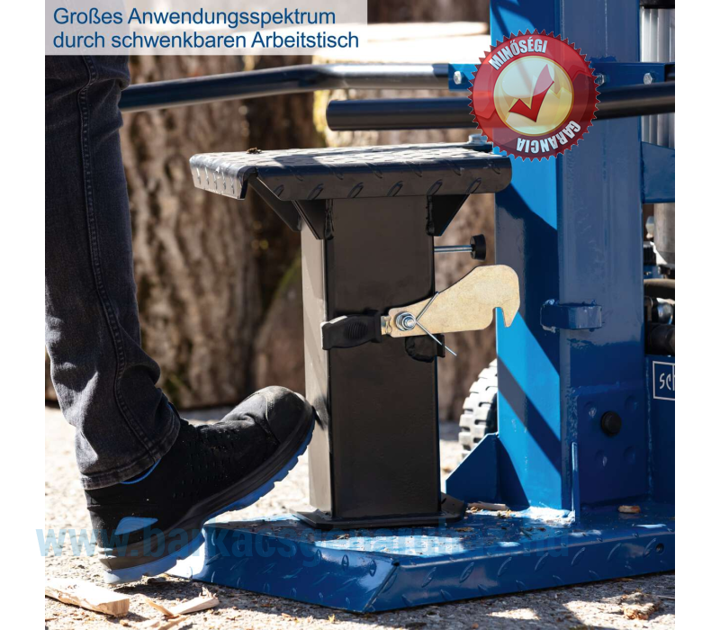 A nagy, 160 x 70 mm-es hasítóék könnyedén hasítja mind a keményfát, mind a puhafát. A Vario hasítórendszernek köszönhetően a különböző méretű fák sem jelentenek problémát. A Scheppach rönkhasító működtetéséhez csak egy szabványos 230 voltos aljzat szükséges.