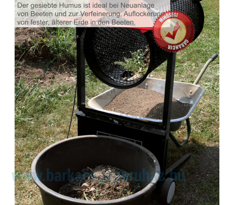 - 400 mm átmérőjű szitadob, 800 mm hosszú