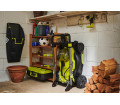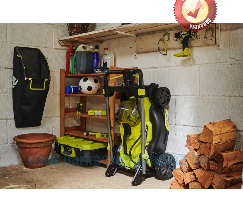 A teleszkópos nyél könnyen lehajtható, és a függőleges tárolásnak köszönhetően kevesebb helyet foglal a fészerben.