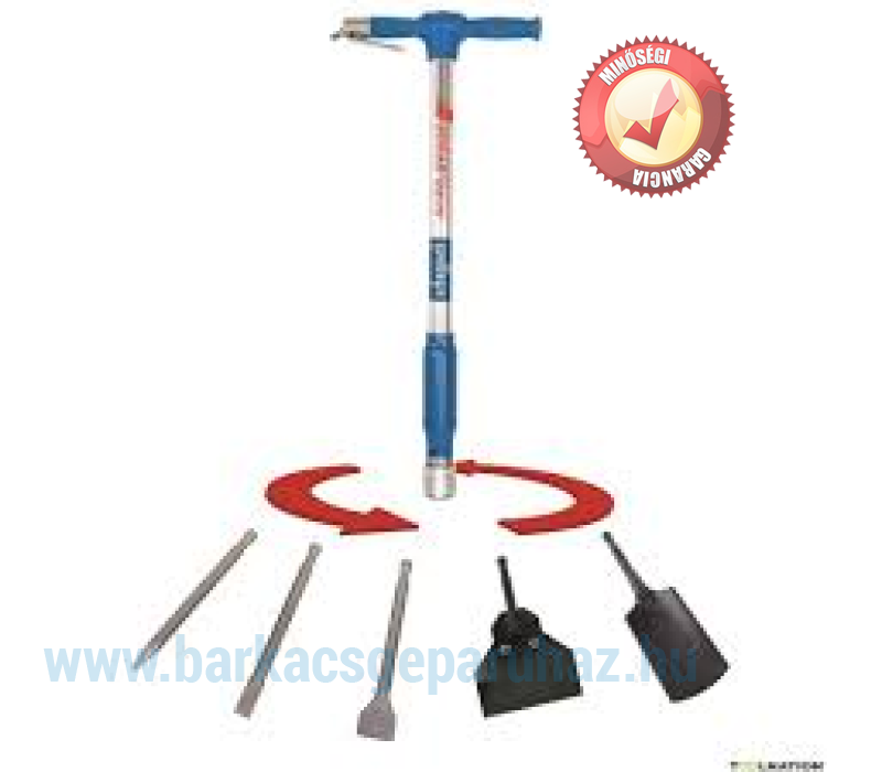 Az öt eszköz tartozék, a vésőszártól a kaparón keresztül az ásólapig, igazán univerzális használatot jelent.