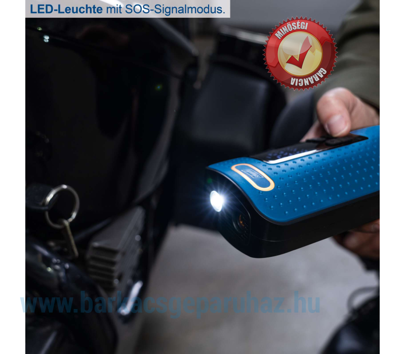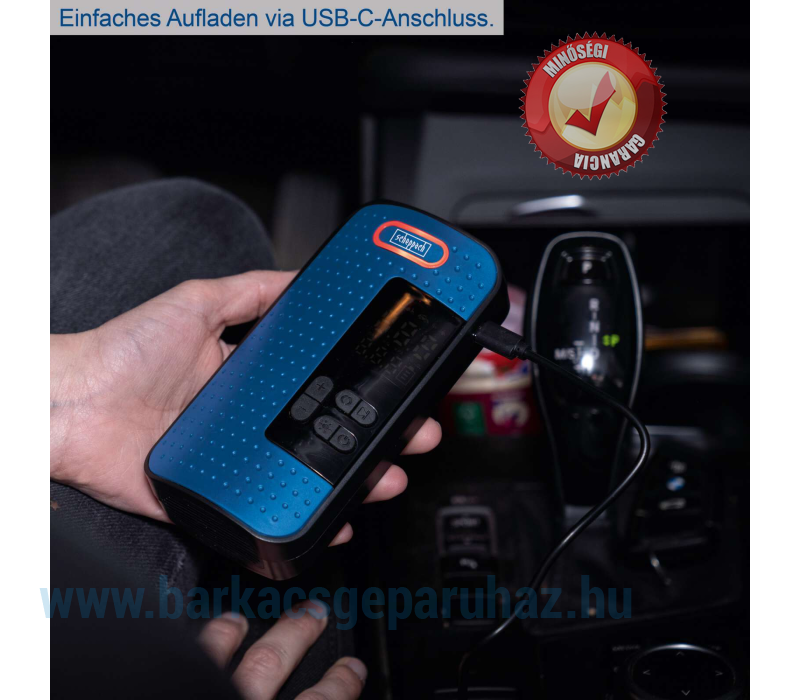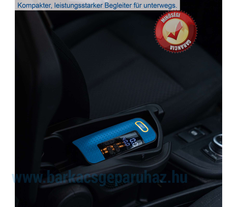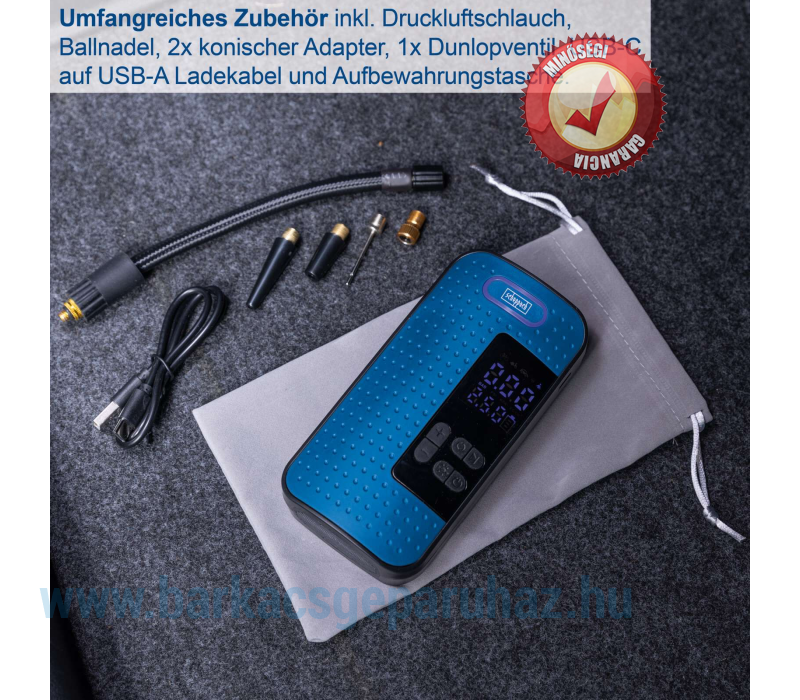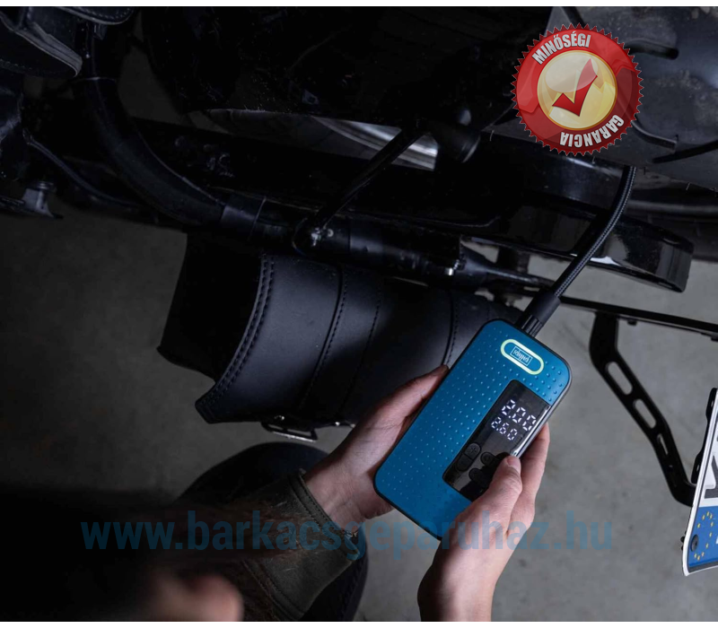 - Kompakt, akkus kézi kompresszor útközbeni használatra – ideális autó- vagy kerékpárabroncsok, valamint játékok és sporteszközök felfújásához