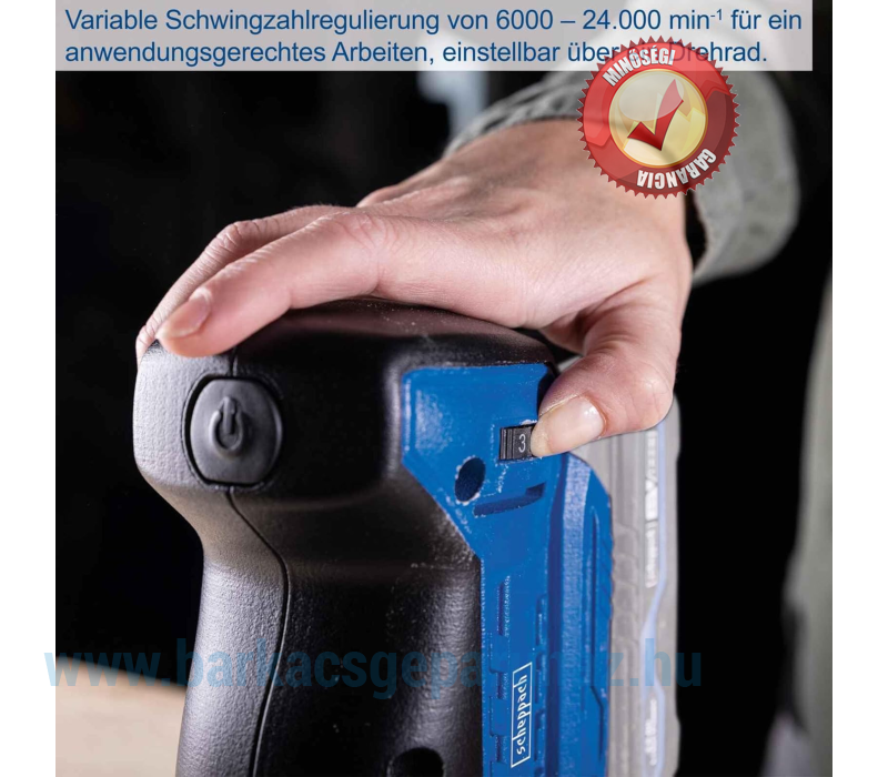 Változtatható vibrációs sebességszabályozás 6000 - 24 000 percenkénti fordulatszám között az alkalmazásnak megfelelő munkavégzéshez, forgókerékkel beállítható