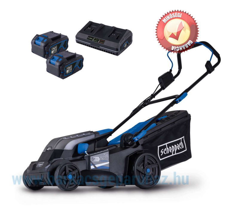 A 38 cm-es vágásszélességű Scheppach akkus fűnyíró BC-MP380-X 450-500 m2 gyepterületű kertekhez alkalmas. A központi vágási magasság állítás 6 fokozatban 25 és 75 mm között, valamint a gyep szélének előtolása mindkét oldalon optimális eredményt biztosít. A BC-MP380-X erős kefe nélküli motorral működik. Ez a kefe nélküli motor különösen nagy hatékonyságot, hosszabb üzemidőt, hosszú élettartamot és kisebb kopást biztosít. A Scheppach IXES 20 voltos sorozat részeként a rendszersorozat összes akkumulátora és töltőkészüléke kombinálható a fűnyíróval. A BC-MP380-X mulcsozó betéttel együtt kerül szállításra.