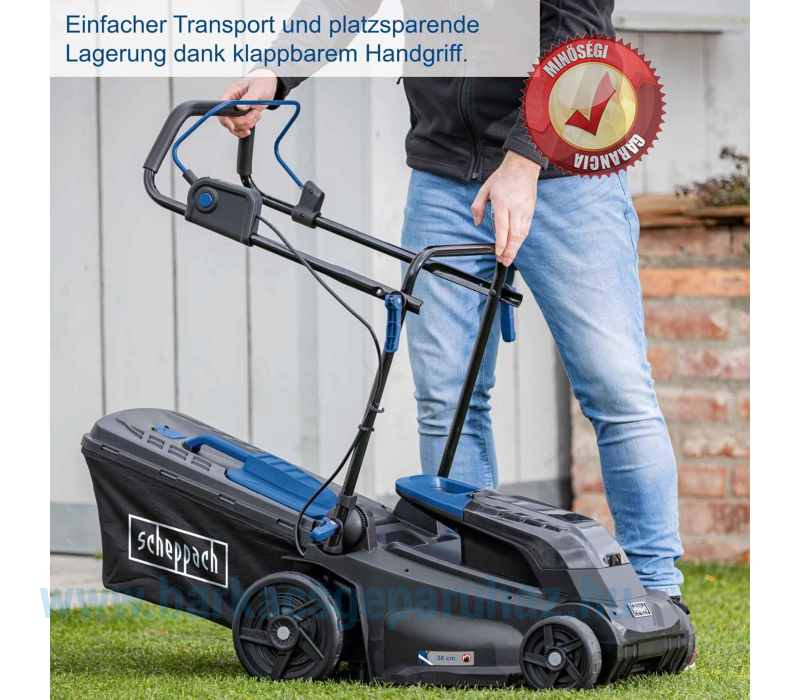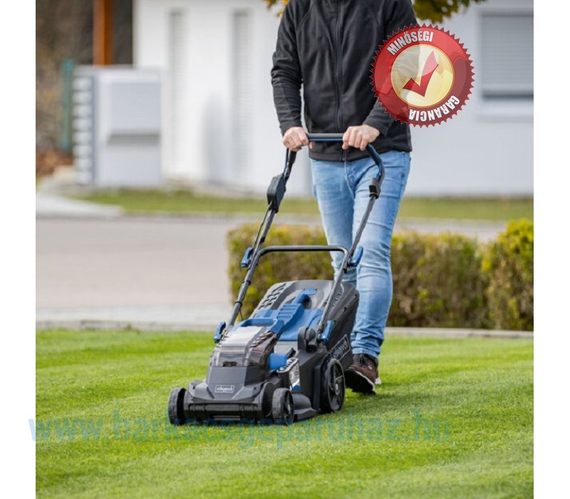 - Erőteljes akkumulátoros fűnyíró 38 cm vágásszélességgel és 4 az 1-ben funkcióval: nyírás,