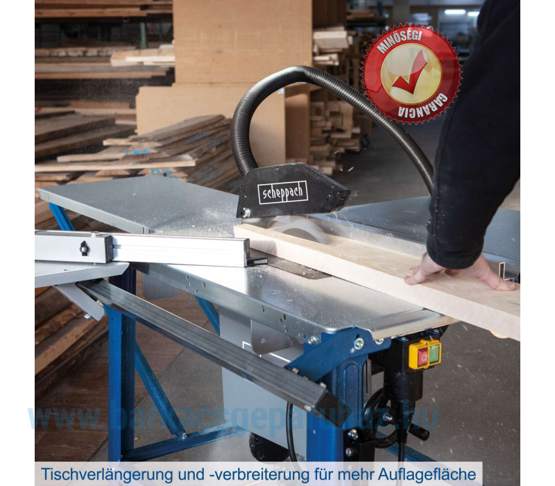 Robusztus, 315 mm-es asztali körfűrész standard tolóasztallal, asztalhosszabbítóval és második fűrészlappal. Precíz vágási magasságállítás nagyméretű kézikerékkel. Ideális barkácsolóknak és profi felhasználóknak.